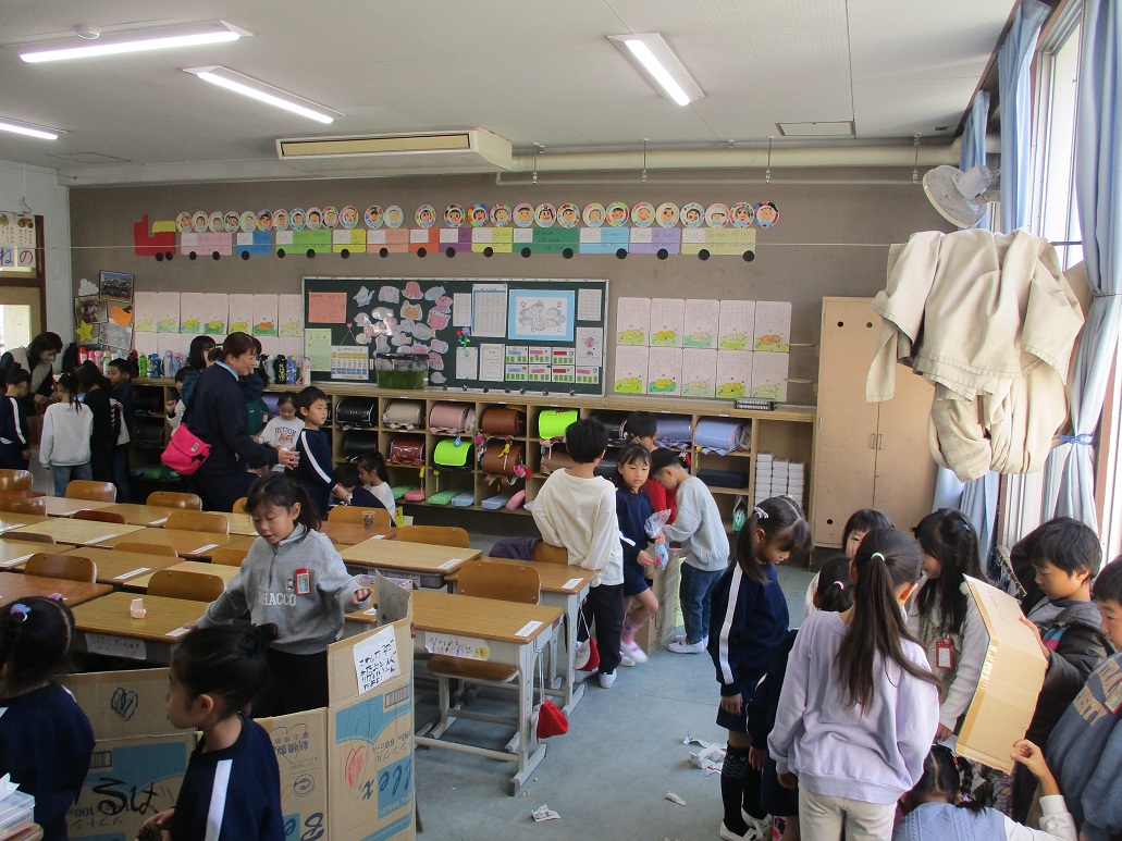 今日は、全校児童が作ってくれた千羽鶴を受け取った